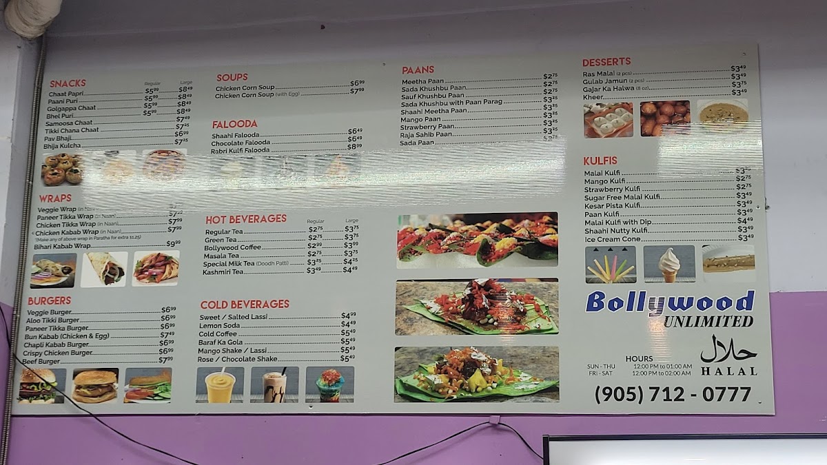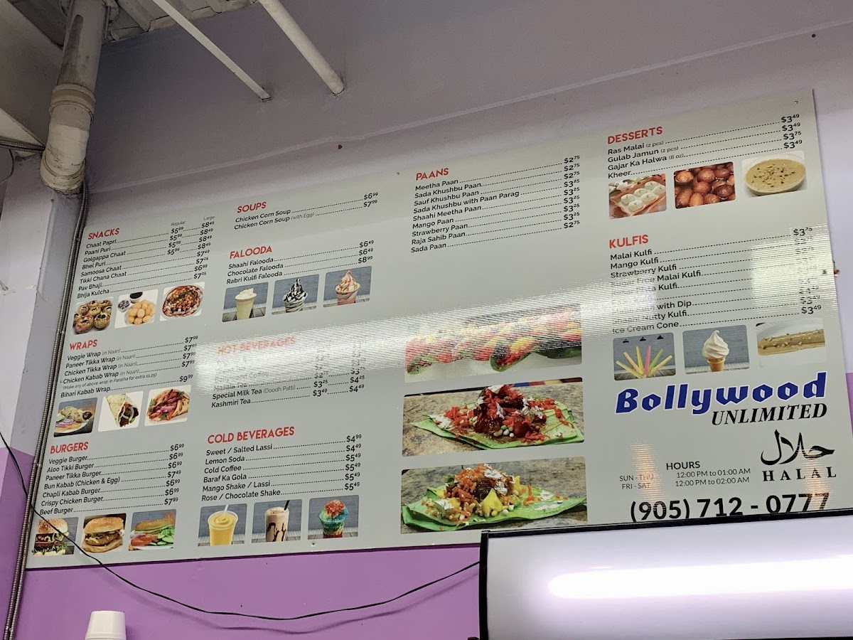 Bollywood Unlimited Menu (Update 2025)